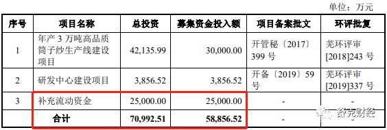 招股书显示,富春染织此次拟发行3120.00万股,且占发行后总股本的比例不低于 25%,募集资金将主要用于年产3万吨高品质筒子纱生产线建设项目、研发中心建设项目、以及补充营运资金。