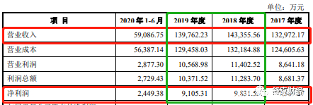 根据招股说明书所示,公司近三年来营业收入分别为13.30亿元、14.34亿元、以及13.98亿元,营业收入2019年较上年下滑2.51%;