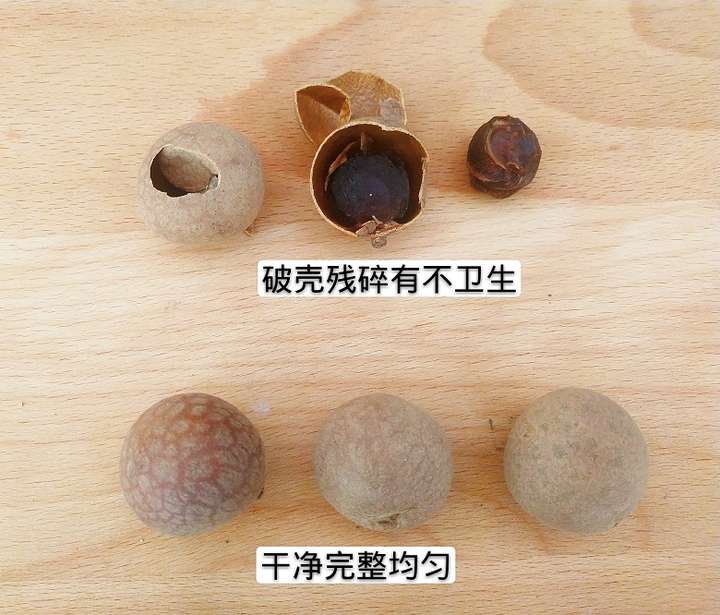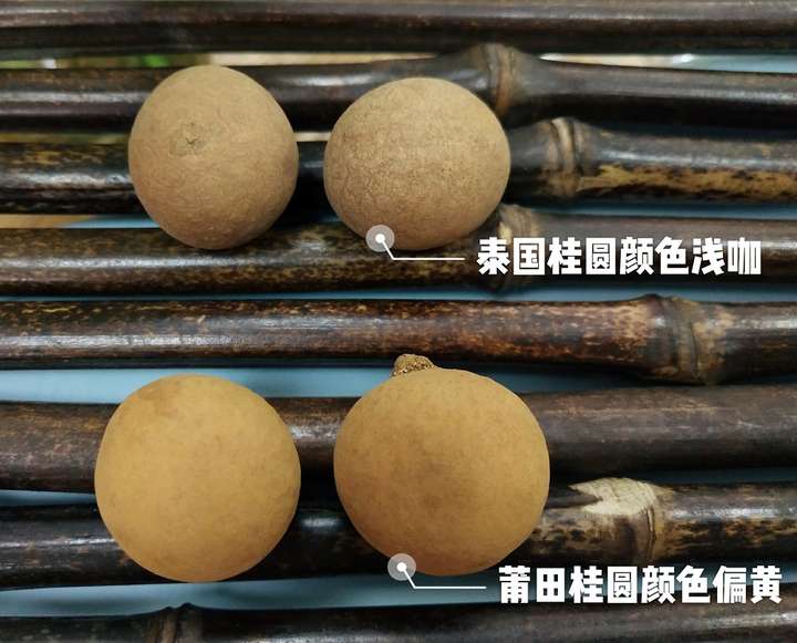 1、产地:中国市场桂圆干主要来自泰国,较为知名的为福建莆田桂圆干。泰国桂圆干采用机器烘干,壳干净,成本低,价格低,皮薄肉厚核小,口感好;真正的好的莆田桂圆干采用摇沙碳烤技术,壳黄,摸起来有泥沙, 人工成本高,价格高,药性更强,皮厚肉薄核大口感较泰国桂圆干较差。下面为泰国和莆田桂圆干对比图: