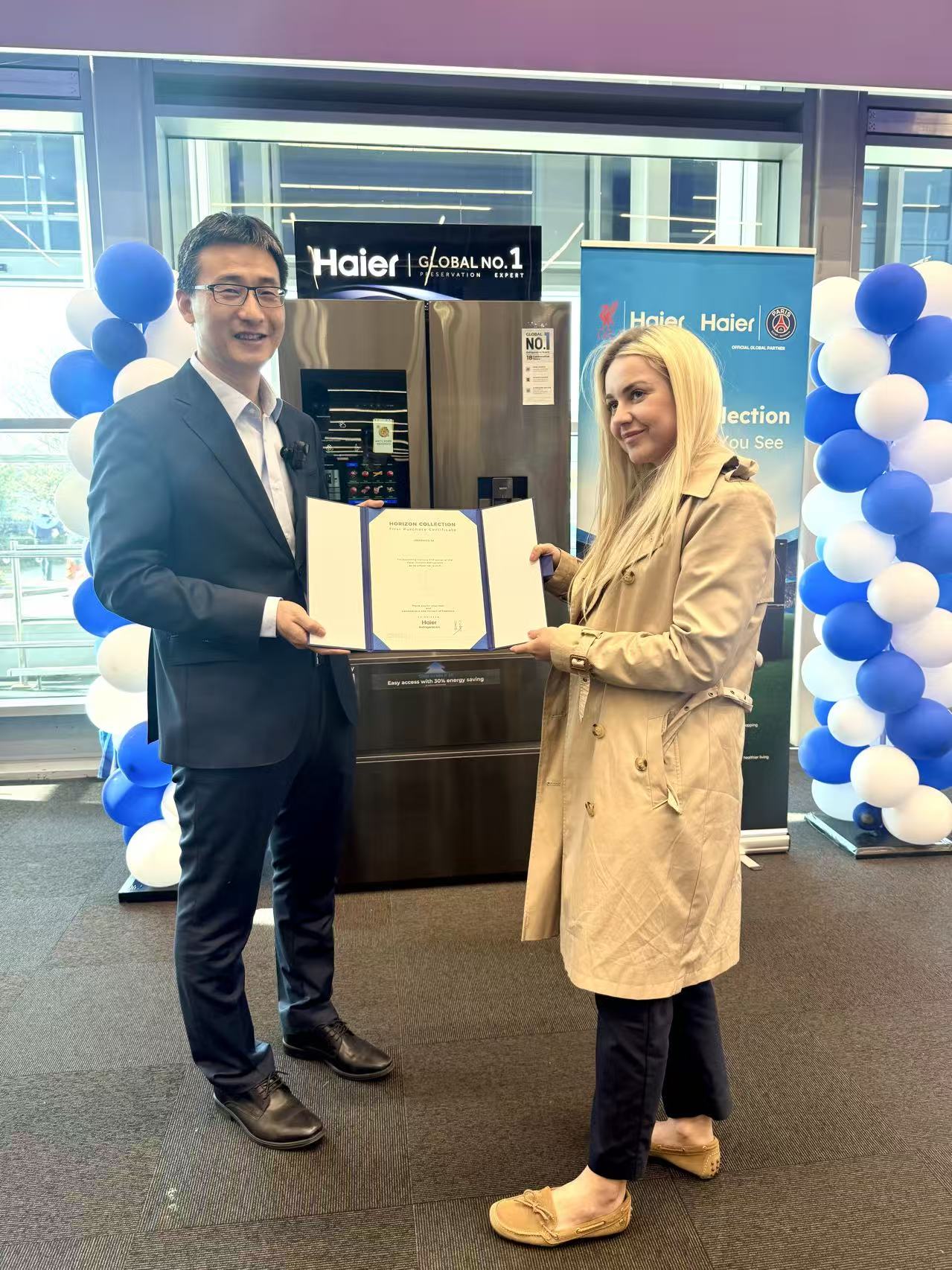 (左为海尔智家股份有限公司副总裁、厨房电器产业总经理;右为英国消费者Collette Green女士)