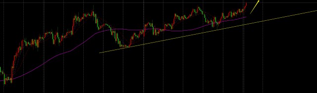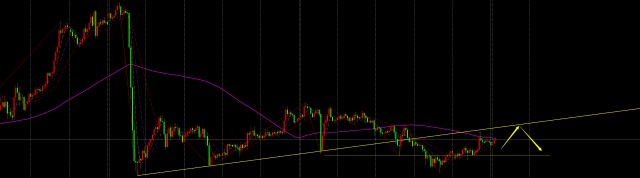 原油持续震荡,行情保持在MA100附近运行,MA100对行情有明显支撑,行情多次回踩都在MA100附近开始反弹,不过行情的反弹力度并不大,可见上方压力依然较重,短期震荡走势还将延续。