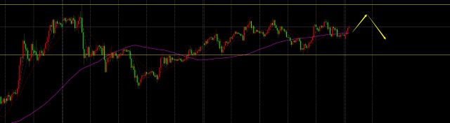 美日持续震荡,行情反弹在MA100附近遇阻,上方MA100的压力和前期低点压力形成压力共振,压力较强,短期反弹高空为主。