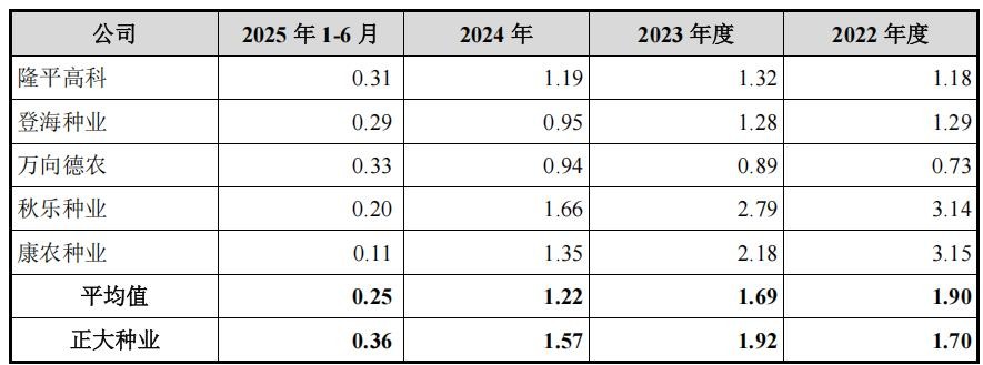 正大种业是一家主要从事玉米种子研发、生产、销售的“育繁推一体化”种子企业。2022年-2025年1-6月,公司营业收入分别为3.187亿元、4.089亿元、3.804亿元和8955.04万元,净利润分别为9469.4万元、8843.16万元、8113.31万元和1194.12万元;2023年和2024年净利润较2022年连续下跌,此外公司2025年实现营业收入3.609亿元,较上年下降5.12%。