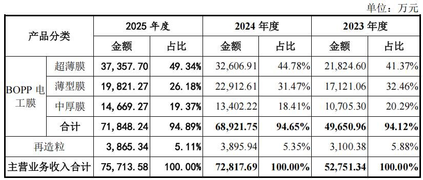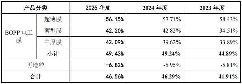 报告期内,嘉德利超薄膜收入快速增长,2023年至2025年复合年均增长率为30.83%,主要系下游客户对电容膜轻量化要求较高,对于超薄膜的需求旺盛。公司具备最薄至1.9μm厚度聚丙烯薄膜的稳定生产能力,下游客户对公司产品认可度较高,采购规模逐步扩大。