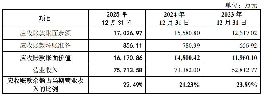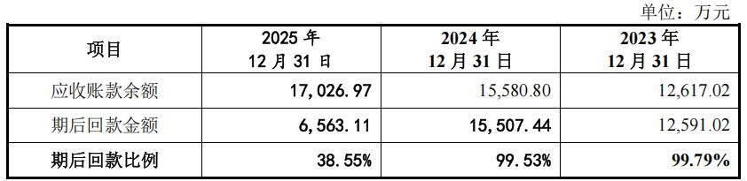 截至2026年1月31日,报告期各期末公司应收账款期后回款比例分别为99.79%、99.53%和38.55%。