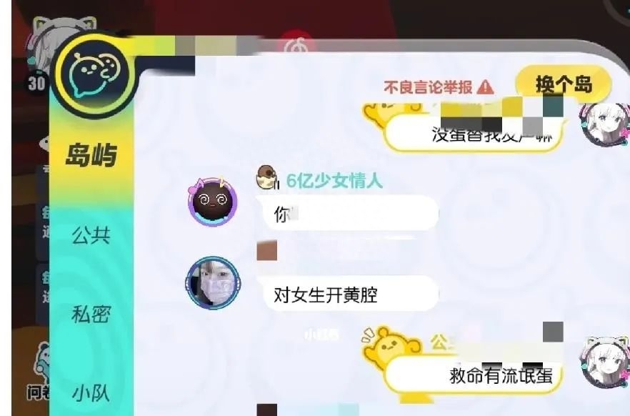 此外,还有多位用户在不同社交平台,晒出截图投诉称,自己在《蛋仔派对》中遭遇“内容低俗”的“性骚扰”,或者在公共频道有大量低俗聊天、用脏话辱骂人等问题。