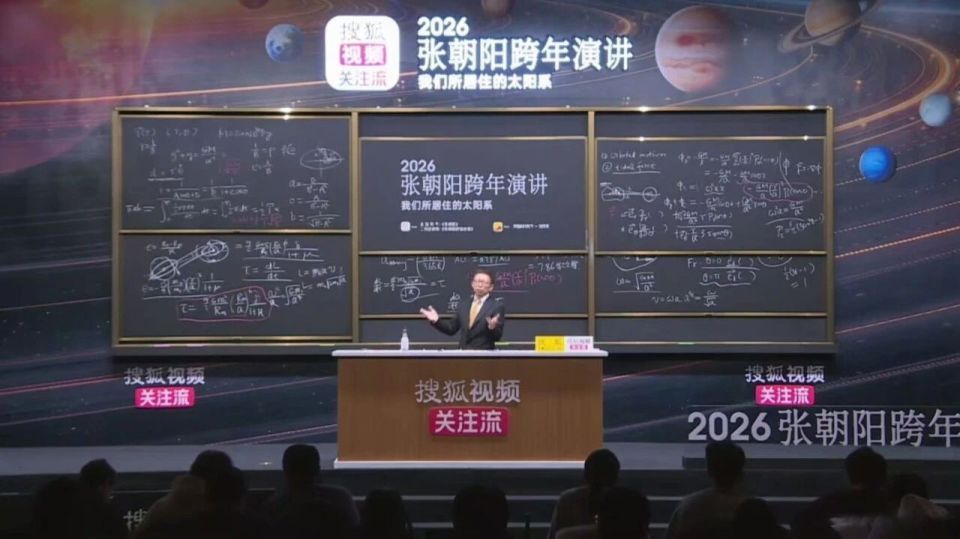 2025年最后两小时,张朝阳开启了以“我们所居住的太阳系”为主题的跨年演讲。他身穿黑色西装,站在黑板前讲起了物理。没有对未来的空泛预判,没有制造焦虑的鸡汤说教,没有急功近利的产品推广,这位搜狐创始人、物理学博士,用数理公式推演行星轨迹,以物理原理解读宇宙规律,带观众在“遨游太阳系”中,度过了一个纯粹而硬核的跨年夜。