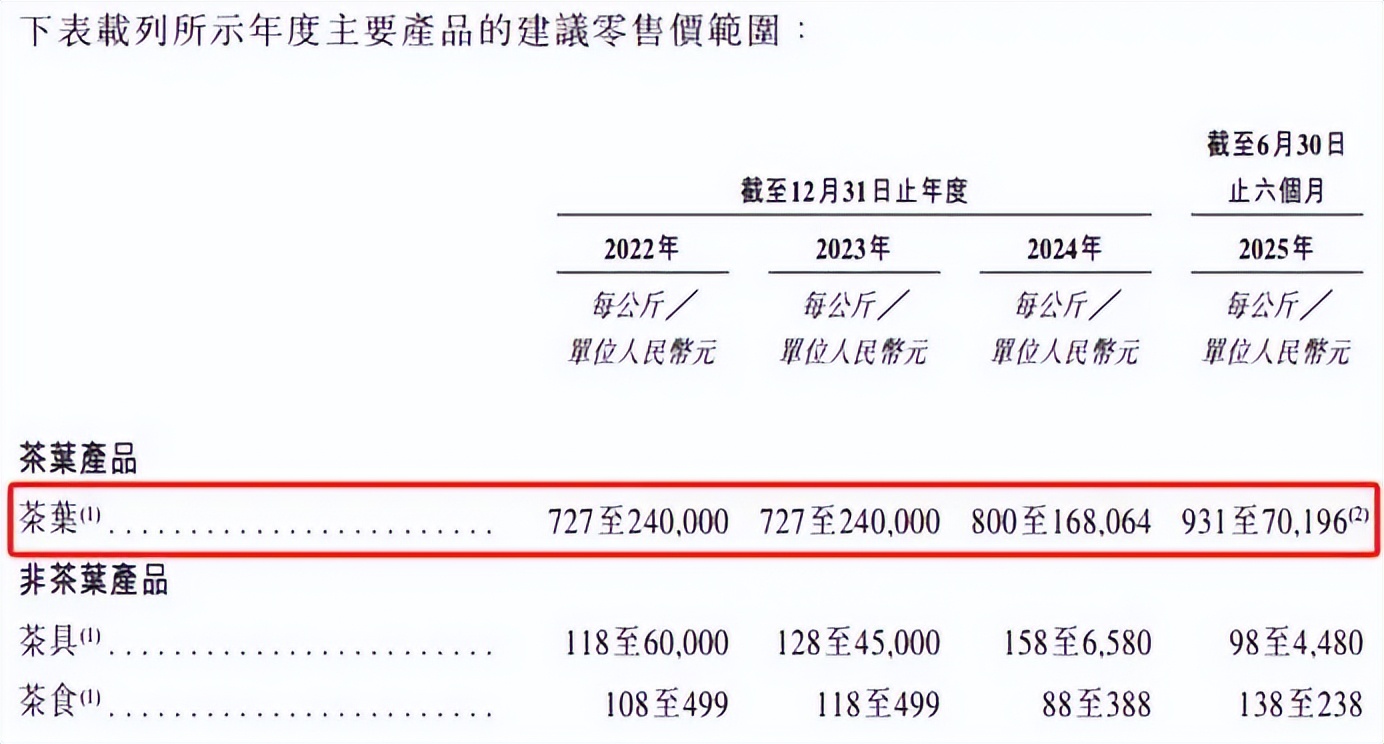 八马茶业的茶叶主打高端策略,即均价在人民币700元/公斤以上的价格段。招股书显示2022年、 2023年、2024年以及2025年上半年,高端茶业的收入分别占总收入的77.9%、 82.7%、82.0%及83.2%。