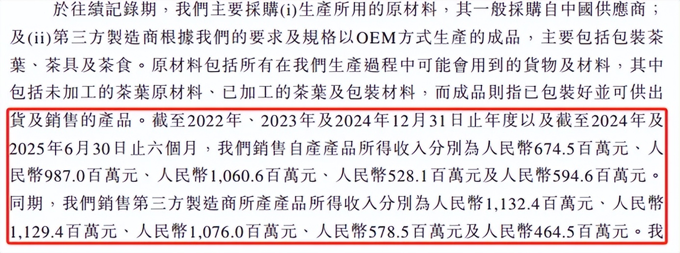 根据招股书披露的数据计算,2022年、2023年、2024年及2025年上半年,八马茶业自产产品(包含茶业与其他产品)的销售收入占比分别37.33%、46.64%、49.64%及56.14%。