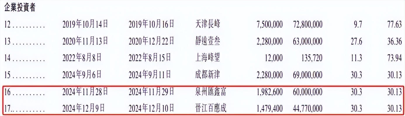 招股书显示,泉州汇鑫富和晋江百应成分别在2024年11月、12月参与了对八马茶业的投资。上市后,泉州汇鑫富和晋江百应成将各自持有八马茶业2.33%及1.74%的股份。