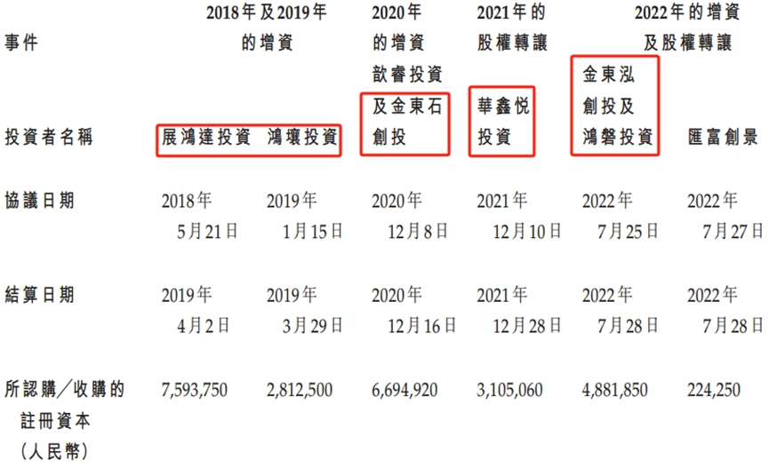 2019年及2022年,鸿石资本分别通过新余鸿壤投资管理合伙企业(有限合伙)以及新余鸿盘股权投资合伙企业(有限合伙)两只基金参与了海西新药的增资。