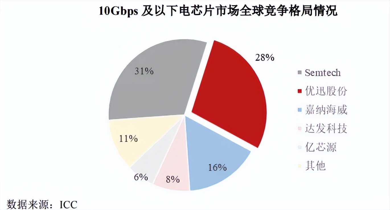 优迅股份在光通信产业链中之所以重要,除了电芯片本身的重要角色之外,还因为它打破了电芯片的国外垄断,实现国产替代。