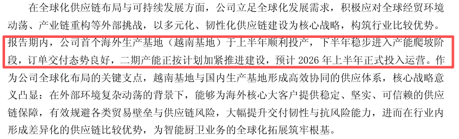松霖科技昨日发布的相关公告还透露了一些项目进展。目前,公司已经将“美容健康及花洒扩产及技改项目”及“越南生产基地一期建设项目”结项,并将节余募集资金永久补充流动资金。公告透露,相关项目如期推进,并在第一季度产生业绩贡献。