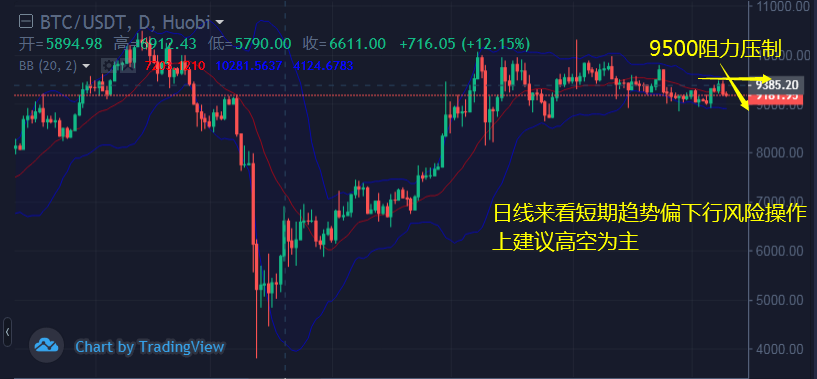 策略一:比特币9200-9150区间空单买入,止损9300,目标9000跌破8900.
