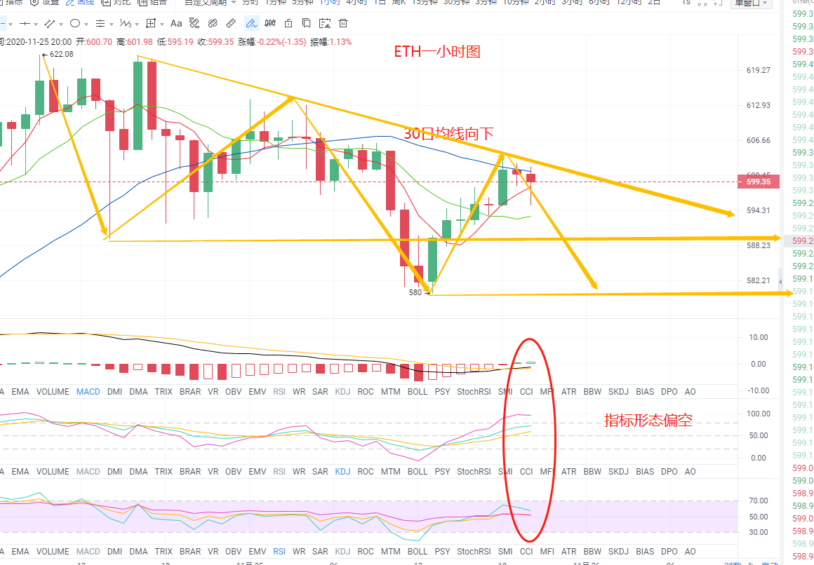 紫盈说币:11.25比特币,以太坊行情分析,小时级别M头,做
