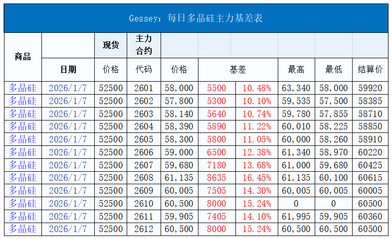 今日硅料价格整体维稳,N型料主流价格在50-56元/公斤,均价52.5元/公斤。N型颗粒硅主流价格在47-51元/公斤,均价50元/公斤。国产复投特级硅料主流价格在36-44元/公斤,均价43.5元/公斤,国产致密特级硅料主流价格在35-43元/公斤,均价42.5元/公斤。全球多晶硅料主流价格在19-22元/公斤,均价20元/公斤。