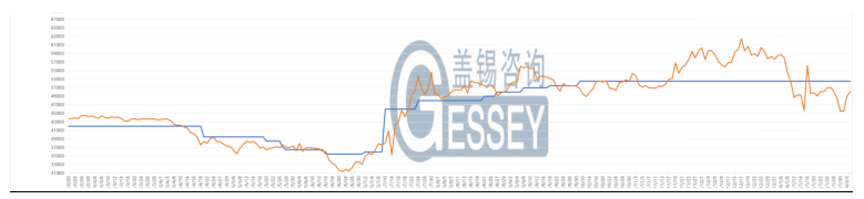行情走势:主力合约收盘价为50060元/ 吨,前结算价为47780元/吨,收盘价较前结算价涨幅为4.77% ,收盘价较开盘价跌140元/吨,跌幅为0.28%,成交量为84手,持仓量为362手。