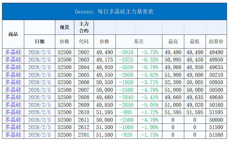 今日硅料价格整体维稳,N型料主流价格在48-55元/公斤,均价52.5元/公斤。N型颗粒硅主流价格在47-51元/公斤,均价50元/公斤。国产复投特级硅料主流价格在36-44元/公斤,均价43.5元/公斤,国产致密特级硅料主流价格在35-43元/公斤,均价42.5元/公斤。全球多晶硅料主流价格在19-22元/公斤,均价20元/公斤。