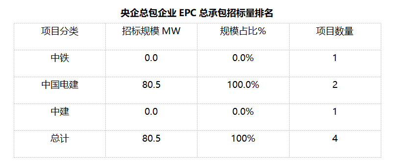 我们统计包含大型央企国企、地方能源集团、地方政府机关、两大电网、央企总包企业、知名光伏企业等,其中央企总包企业占总招标规模较高,具体各企业排名如下表: