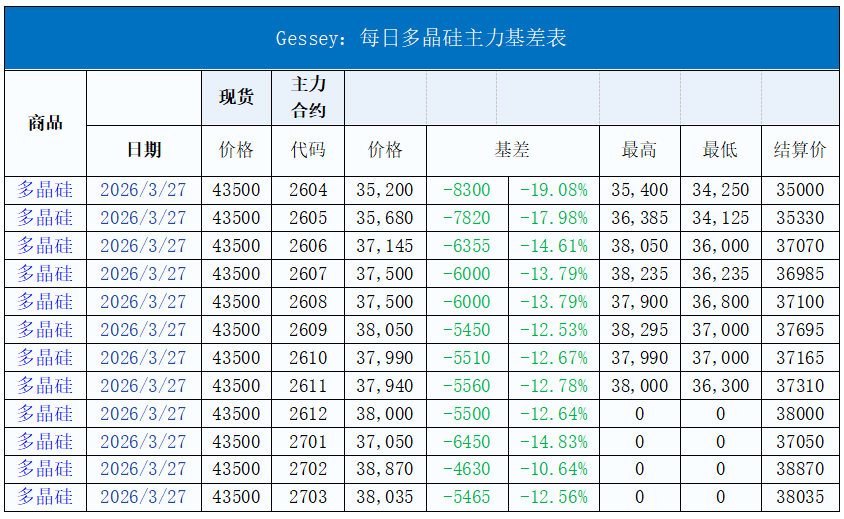 Gessey:3月27日每日光伏市场行情