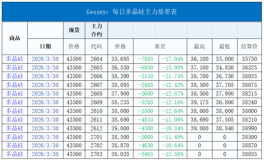 Gessey:3月30日每日光伏市场行情