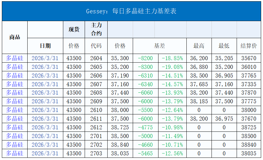 今日硅料价格整体维稳,N型料主流价格在40-43.5元/公斤,均价43.5元/公斤。N型颗粒硅主流价格在40-42.5元/公斤,均价42.5元/公斤。国产复投特级硅料主流价格在40-42.5元/公斤,均价42.5元/公斤,国产致密特级硅料主流价格在39-40元/公斤,均价39.9元/公斤。全球多晶硅料主流价格在19-22元/公斤,均价20元/公斤。