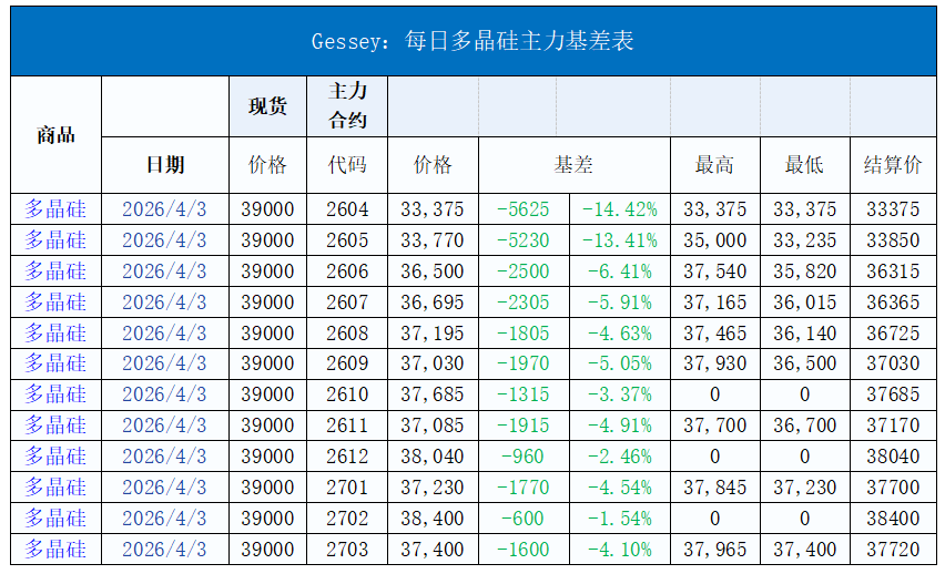 Gessey:2026年4月3日每日光伏市场行情
