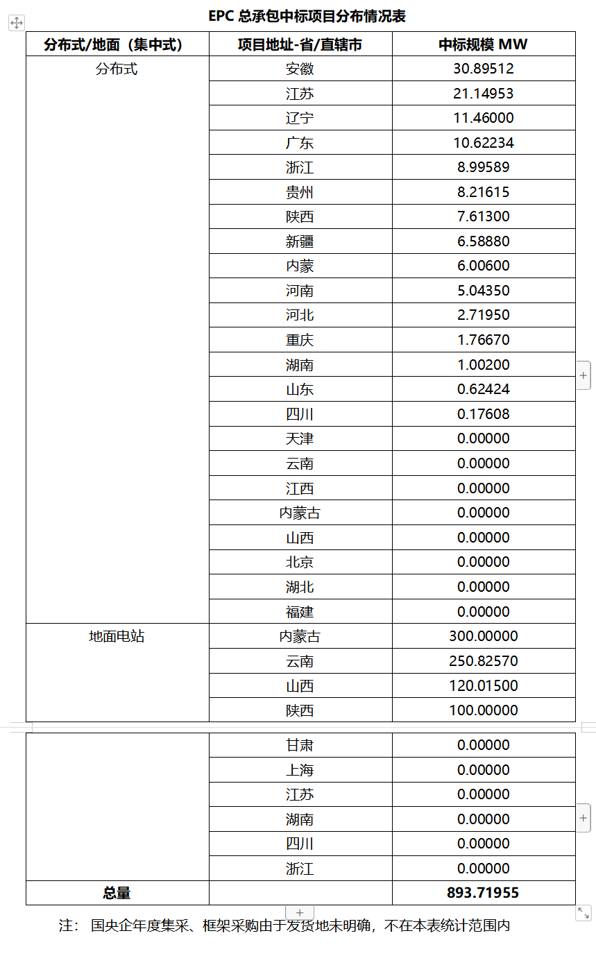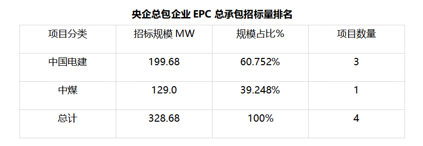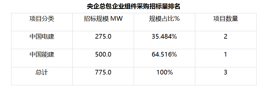 我们统计包含大型央企国企、地方能源集团、地方政府机关、两大电网、央企总包企业、知名光伏企业等,其中央企总包企业占总招标规模较高,具体各企业排名如下表: