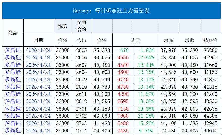 今日硅料价格整体维稳,N型料主流价格在35-37元/公斤,均价36元/公斤。N型颗粒硅主流价格在35-36元/公斤,均价35元/公斤。国产复投特级硅料主流价格在34-36元/公斤,均价34元/公斤,国产致密特级硅料主流价格在32-36元/公斤,均价33元/公斤。