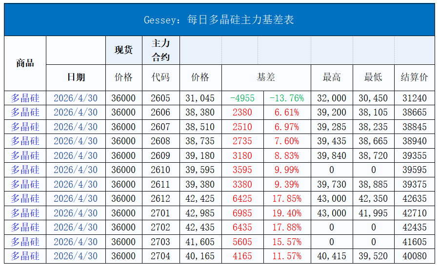 Gessey:2026年4月30日每日光伏市场行情