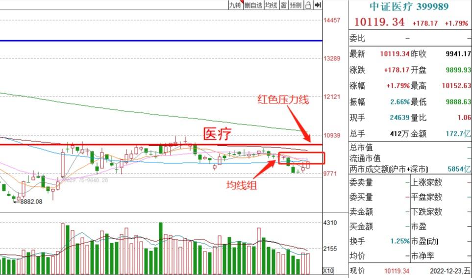 医疗板块同样是探底回升,情绪有些回暖,但是现在回到了均线组附近,上方的压力相对集中,想要一次性突破需要有大量资金的支持,否则很容易突破失败,再加上少然医疗的仓位较重,需要进行谨慎操作,所以现在会继续持续观察,在有效突破上方红线之前,暂时不考虑入场加仓。