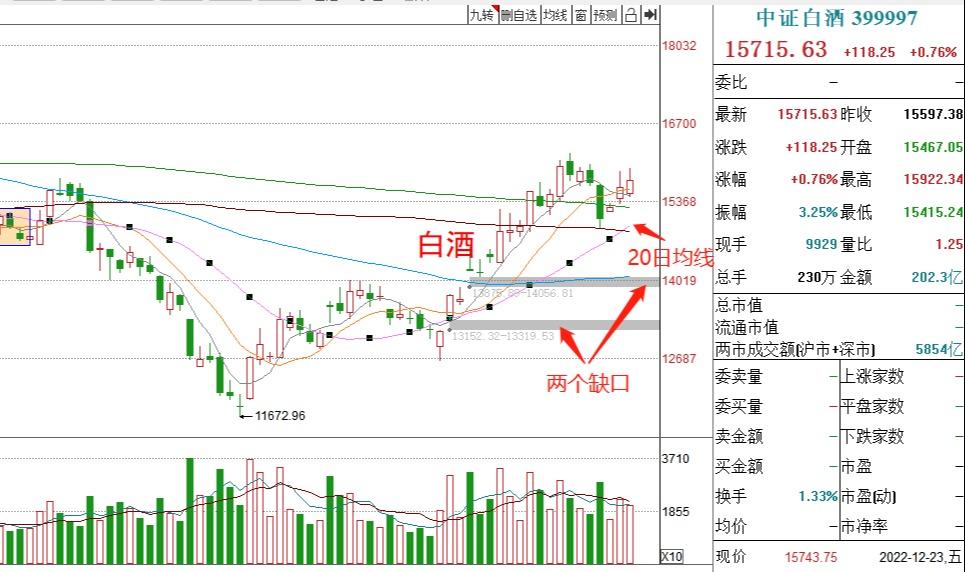 本周白酒板块探底回升,除了周五北上资金休市以外,其他4天外资一直保持净流入的状态,这说明白酒的长线逻辑并未结束,少然的长线仓位没有减仓的想法,近期会继续等待加仓的机会,把短线仓位加进去,加仓的点位有三个,分别为20日均线和下方的两个缺口。