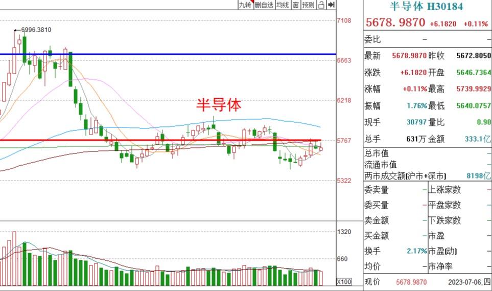 半导体今天向上试探20日均线的压力情况,但是在临近时出现了回落的走势,目前依然在红线之下,此时短线的风险略大一些,少然暂停操作,等后期有效突破红线之后,机会将会大于风险,到时候少然再考虑入场加仓,在此之前选择躺平不动。
