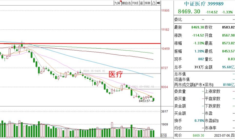 医疗板块再次下跌,创了近期的新低,少然认为这个板块被没有被主力资金关注,短线快速拉升的迹象并不明显,所以近期暂时不考虑操作。