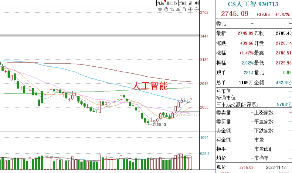 人工智能在大科技板块的带领下,今天开盘之后快速冲高,但是最终走出了回落的走势,以目前的情况来看,人工智能近期可能会再次向下调整,少然认为短线方向尤其是仓位较重的情况下,不太适合入场追涨,但是整体向上的大逻辑不变,所以长线方向,少然近期会继续逢低加仓,只是短线会谨慎一些。