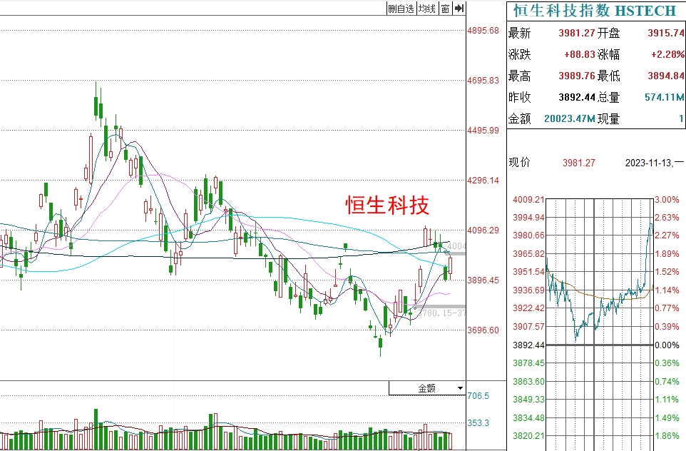 恒生科技尾盘突然搞偷袭,在3点A股收盘之后,出现了快速拉升的动作,最终以2.28%收盘。少然认为这个板块的走势比较稳定,向上的逻辑较强,近期会继续逢低加仓这个板块,如果后期被20日均线提供向上的支撑,少然会考虑加速布局。
