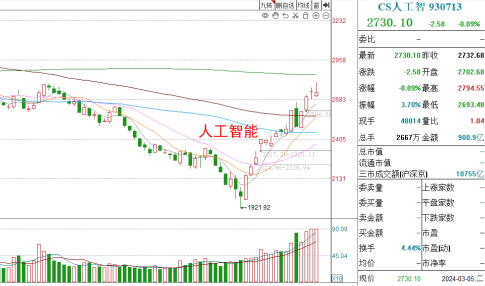 人工智能板块出现了明显的冲高回落动作,这就是少然之前说的短线可能要向下调整,如果最近两天没有出现大型利好消息的话,人工智能大概率要向下运行,所以做T和超短线方向需要考虑避险,至于中长线方向,人工智能的逻辑依然很强,近期调整之后大概率会有第2轮的上涨,所以少然认为长线角度可以逢低加仓,把回调当成上车机会。