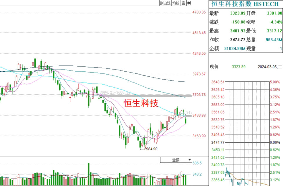 恒生科技今天很是尴尬,神秘资金主要维护了A股市场,港股没有照顾到,今天出现了较大幅度的下跌,不过量能没有明显的放大,现在依然在20日均线附近,最近两天只要没有有效跌破这条线,少然认为恒生科技不会改变震荡向上的趋势。如果最终跌破,向下的空间也比较有效,只是可能要硬扛一段时间,会比较磨人。