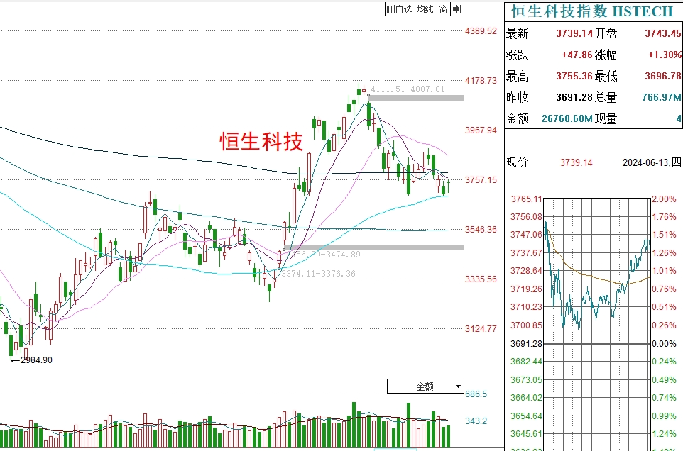 恒生科技今天探底回升,最近下跌的走势得到了缓解,少然近期会继续分批加仓,做长线布局。