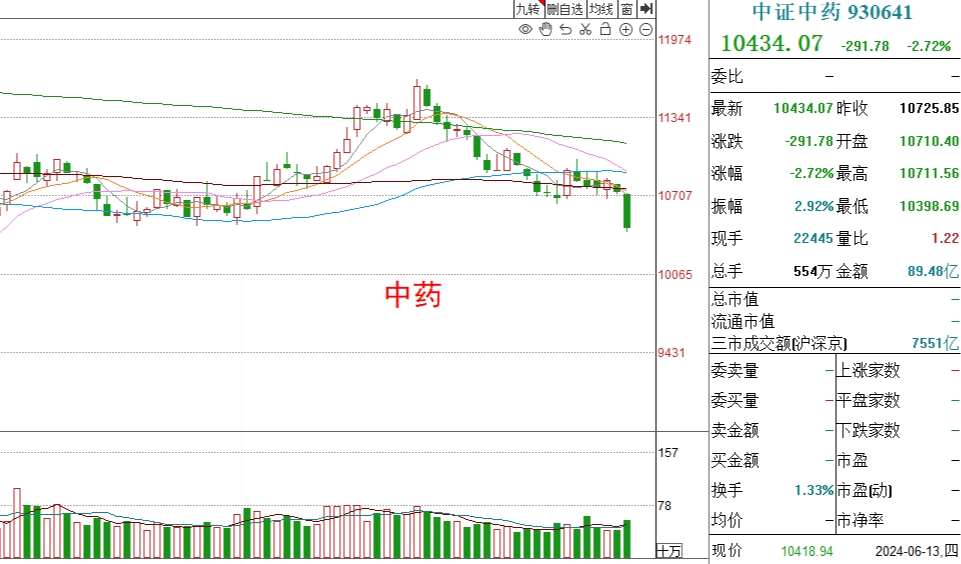 中药今天莫名其妙的下跌了,跌幅高达2.72%,少然查找了消息面并没有发现大型的利空。这其实才是最可怕的,如果知道下跌原因,就能推测出现在该怎样操作,但是没有原由的下跌,可能存在主力减仓的情况,所以这两天少然会重点观察能否探底回升,如果出现这个动作,会继续执行之前的策略。如果没有出现,会考虑减仓短线仓位,暂停继续加仓。