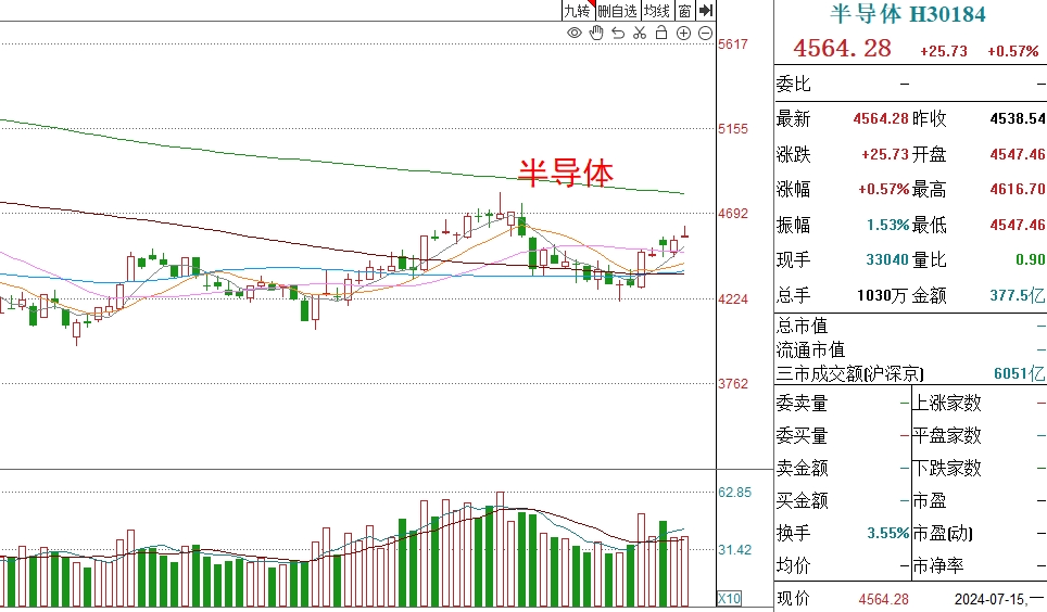 半导体周末出现利好消息,有新的半导体指数即将上线,预计会有更多的资金入场布局。不过今天快速拉升之后,尾盘有明显的回落动作,所以有可能还要在这里震荡调整一下,少然会重点观察20日均线的得失情况。如果成功守住,上升趋势会继续维持。但是假如没有守住,需要降低仓位,转成长线参与。