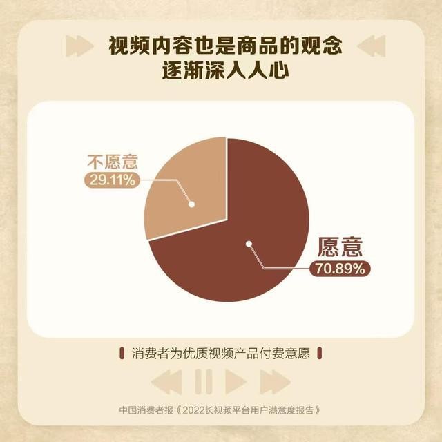 这一趋势下,视频内容是一种商品的意识更加深入人心。具体而言,用户付费观看视频内容的习惯逐渐养成,并愈发追求品质。据《中国消费者报》的问卷调查,70%以上用户愿意为优质视频内容买单,1-3个月成为最受用户欢迎的购买周期。