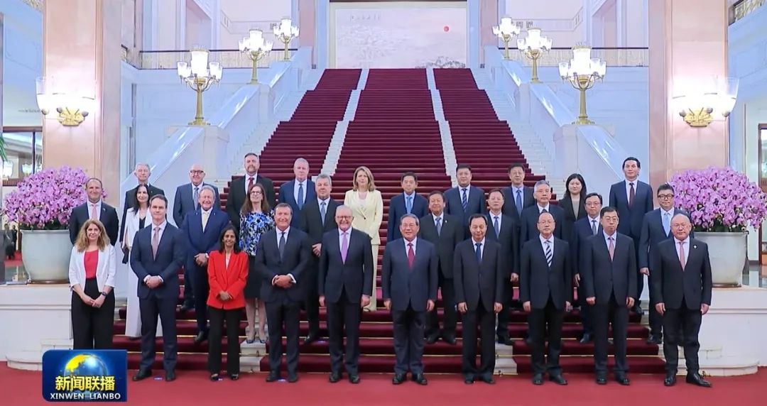 据央视报道,7月15日晚,国务院总理李强同澳大利亚总理阿尔巴尼斯共同出席第八届中澳工商界首席执行官圆桌会。近30位中澳商会和企业负责人出席。