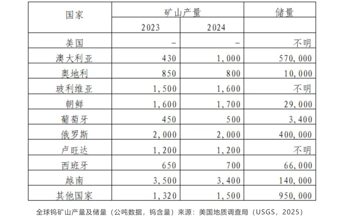 所以,2024年全球钨矿产量8.28万吨,2026年预计仅增至8.55万吨,年增长率不到2%。而同期需求从10.21万吨增至10.8万吨,供需缺口从1.93万吨扩大至2.25万吨。