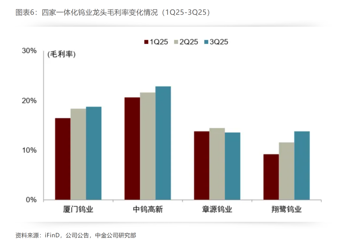 中钨高新2025年前三季度扣非净利润同比暴涨407.52%,第三季度环比增长超700%;厦门钨业2025年全年收入464.69亿元,同比增长31.37%;实现利润总额40.81亿元,同比增长28.45%。