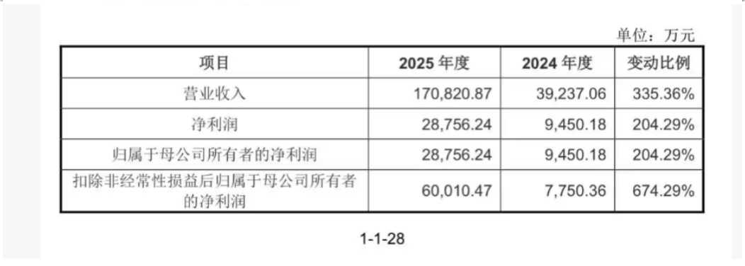 招股书显示,宇树科技计划在科创板上市,拟募集资金42.02亿元,发行不低于4044.64万股。2025年,公司营业收入17.08亿元,同比增长335.36%;扣非净利润6.00亿元,同比增长674.29%。四足机器人累计销量已超3万台,人形机器人从2023年仅销售5台,到2025年出货量突破5500台。