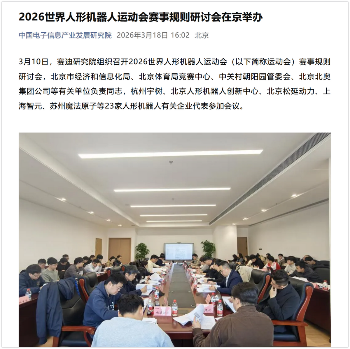今年4月,北京亦庄将举行一场机器人半马。此外,前几天,2026世界人形机器人运动会赛事规则研讨会已经在北京举行,与会者都是当下机器人产业的明星公司,包括但不限于宇树,今年上春晚的银河通用、松延动力、上海智元、魔法原子等。