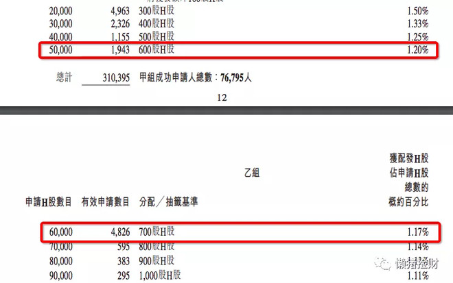 最近没什么其他新股,加上泰格医药在A股走势很好,使得认购倍数超400倍,申购60手稳中1手可以理解,但一手中签率5%着实太低了。这次泰格货算是比较多的了,回拨后甲乙组各11万手,之前思摩尔也是差不多这个数,但两者一手中签率相差非常大,我看了下数据,思摩尔甲组11万手中拿了2万手分给一手党,而这次泰格医药只拿了6千手分给一手党,这也太不友好了。