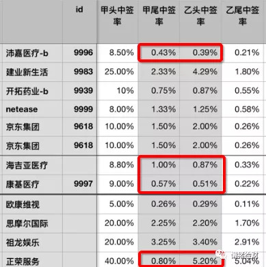 比较常见的情况是甲尾和乙头中签率接近,甚至甲尾要好乙头一些,所以我才说像正荣服务这种情况很少见,但也不是没有,历史数据仅做参考