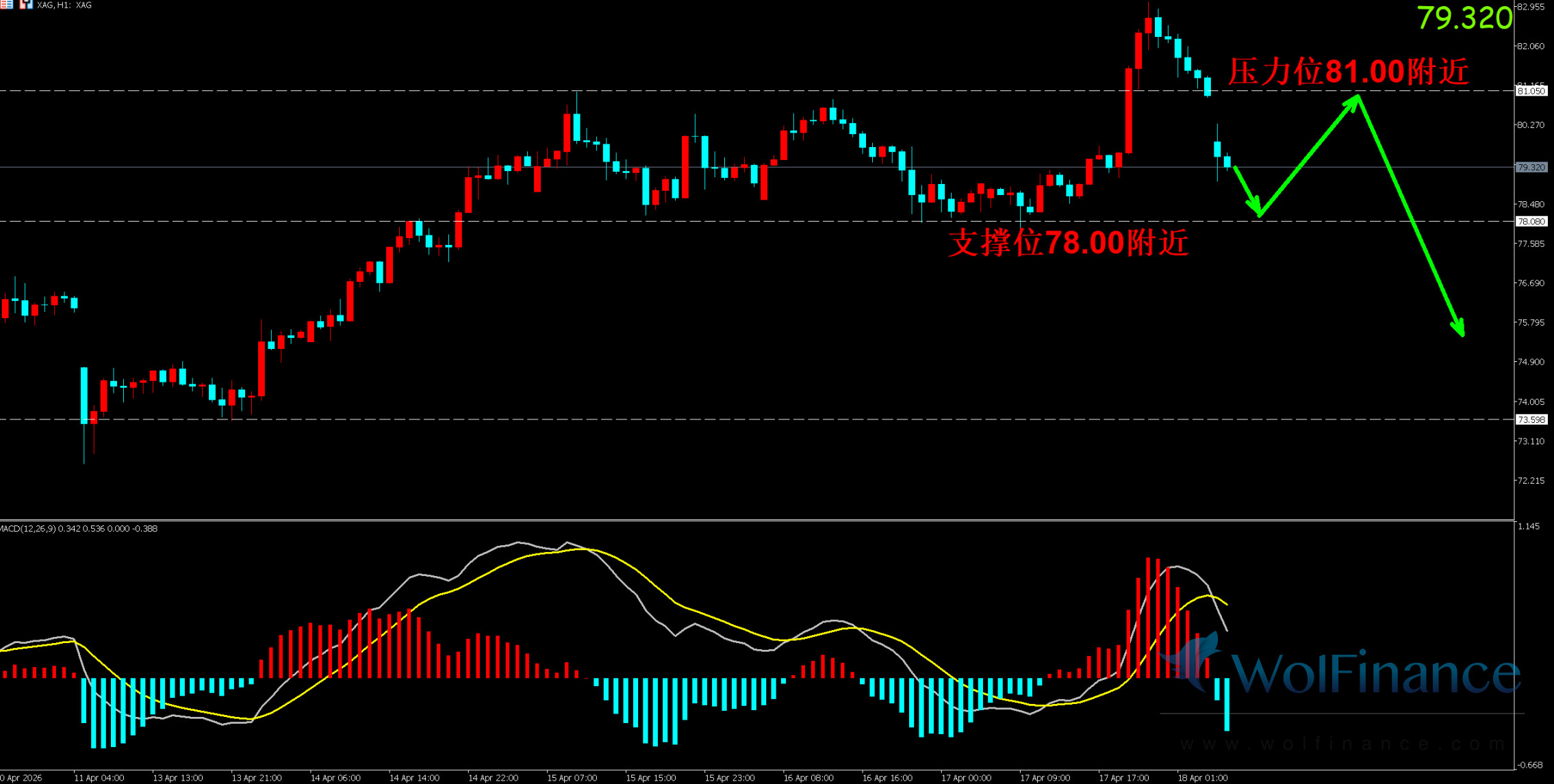 压力位:81.00 附近(前期高点 + 关键阻力带)